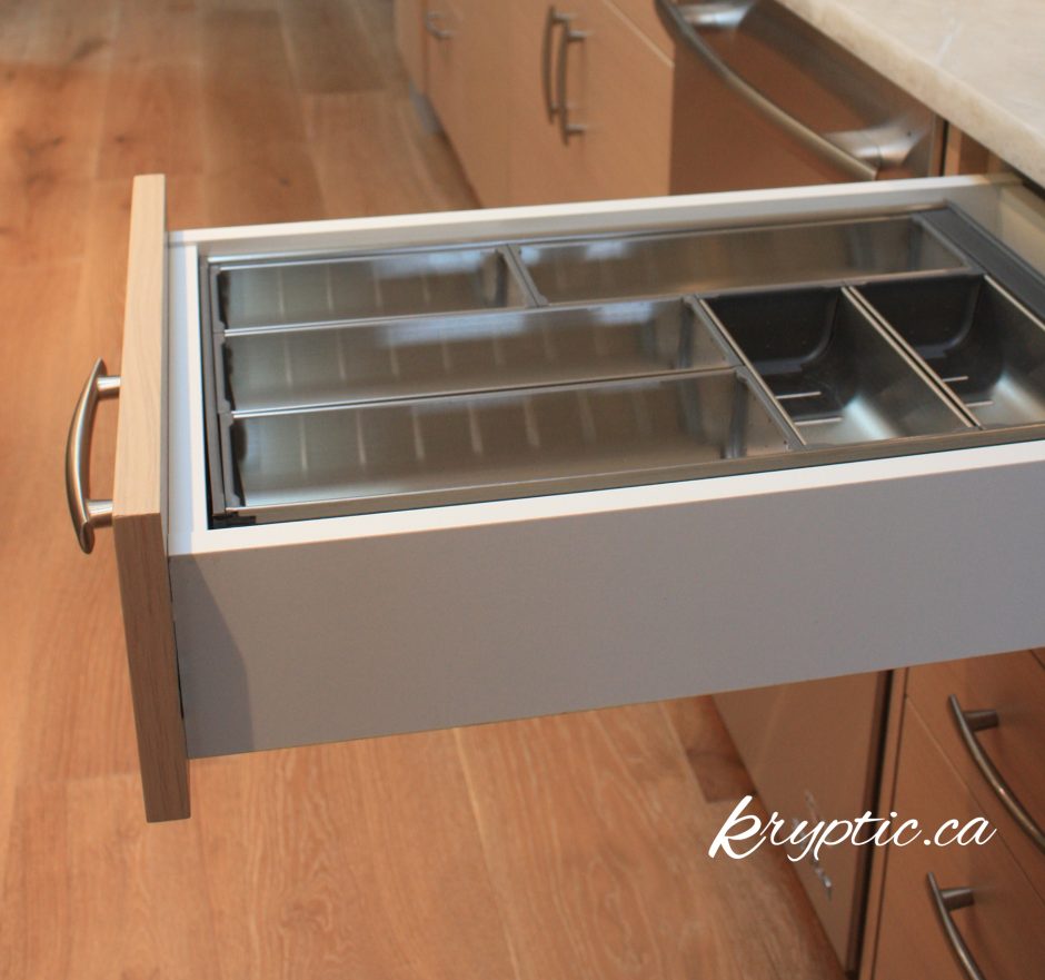 Stainless Steel Cutlery Insert Organize your cutlery and kitchen utensils in customizable drawer inserts.